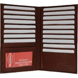 Leather Credit Card Organizational Wallet by Marshal Material is leather Measures 7.1/4" x 4" Pebble grain finish Interior has 19 card slots, 1 ID window, 2 slip pockets This slim organizer is great for keeping everything you need together without the bulk