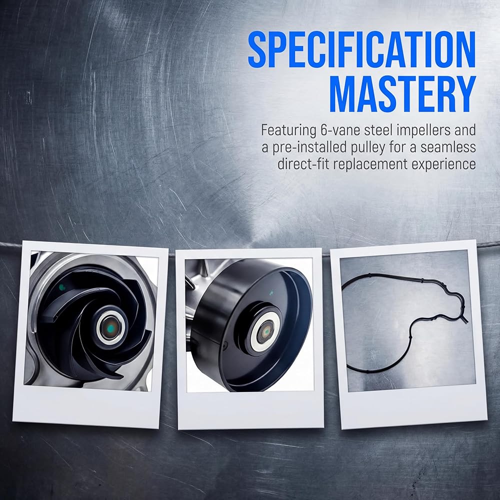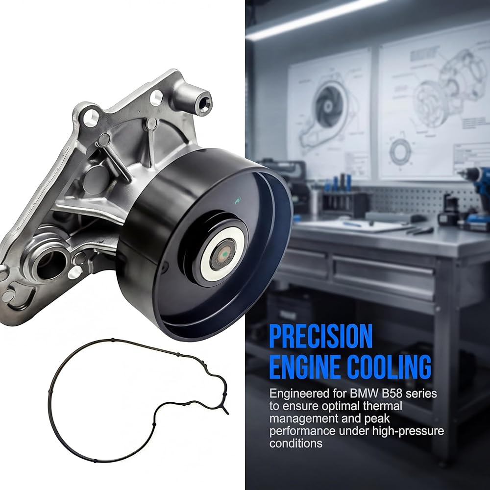 AMCC Engine Water Pump W/Pulley & Seal 6Cyl 2.0 3.0L - Compatible with BMW B58 F/G Series - 18-21 - 340i 440i 540i 740i xDrive, 440i Gran Coupe, M240i, X3, X4 Replaces:11518632585, 11517643067 [Vehicle Fitment-1]: Compatible with BMW F30 340i 2018 L6 3.0L, F34 340i GT xDrive 2018-2019 L6 3.0L, F30 340i xDrive 2018 L6 3.0L, F32/F33 440i 2018-2020 L6 3.0L, F36 440i Gran Coupe 2018-2020 L6 3.0L, F33 440i xDrive 2018-2020 L6 3.0L, F36 440i xDrive Gran Coupe 2018-2020 L6 3.0L, G30 540i 2018-2019 L6 3.0L, G30 540i xDrive 2018-2019 L6 3.0L [Vehicle Fitment-2]: Compatible with BMW G32 640i xDrive Gran Turismo 2018-2019 L6 3.0L, G12 740i 2018-2019, G12 740i xDrive 2018-2019 L6 3.0L, F22/F23 M240i 2018-2021 L6 3.0L, F22/F23 M240i xDrive 2019-2020 L6 3.0L, G01 X3 2019, G02 X4 2019-2020 [Reference Number]: 1153160, 11518632585, 11512379782, 11517643067 & [Specifications]: ①Housing Material: Aluminum; ②Impeller Vane Quantity: 6; ③Impeller Material: Steel; ④Impeller Rotation: Reverse; ⑤Mounting Hole Quantity: 5; ⑥Drive Type: Serpentine Belt; ⑦Pulley Included: Yes [Benefits]: Manufactured to the most exacting standards for superior performance. Made of excellent materials with anti-corrosion features, long-lasting and stable. Excellent impact and abrasion resistance, excellent sealing properties to effectively prevent leakage [Buy with Confidence]: AMCC offers a one-year unlimited-mileage guarantee on our meticulously crafted engine water pump. We offer a wide variety of automotive accessory categories, ensuring that you can hit the road with peace of mind