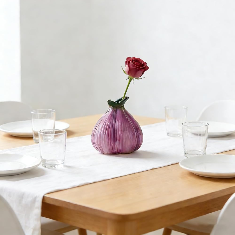 Every curve of this vase is inspired by the perfect form of a onion. From the subtle, realistic dimples on the surface to the delicately crafted green leaf that adds an organic touch, no detail is overlooked. The high-gloss glaze reflects light beautifully, ensuring it stands out as a bright, artful accent in any setting.