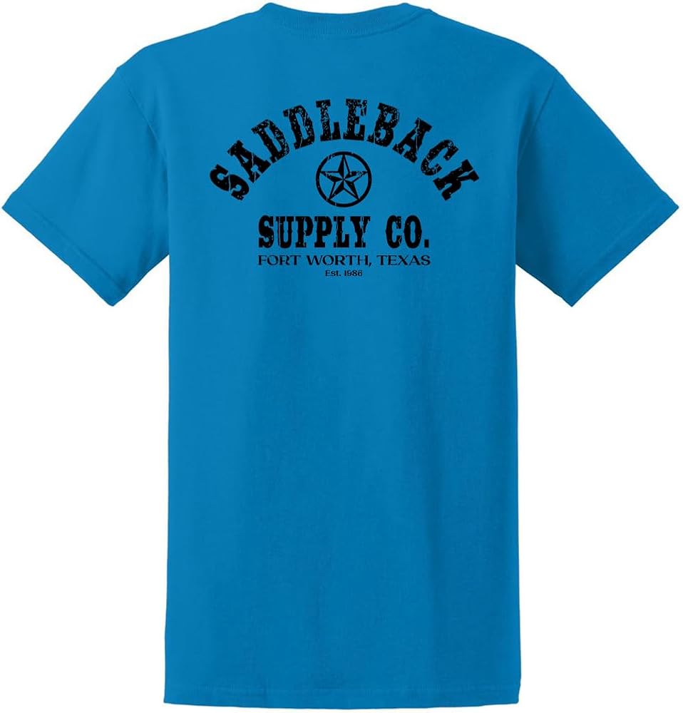Introducing the Saddleback Supply Men's The Lone Star Logo Heavy Cotton Tee, perfect for any occasion. This popular tee is made from 100% soft spun cotton with a 1x1 rib knit collar, shoulder to shoulder back neck tape, and comes in an array of classic colors. It's a casual essential for every man and our best selling tee year-round. Step up your style game with this iconic shirt and show off the classic Lone Star logo wherever you go.