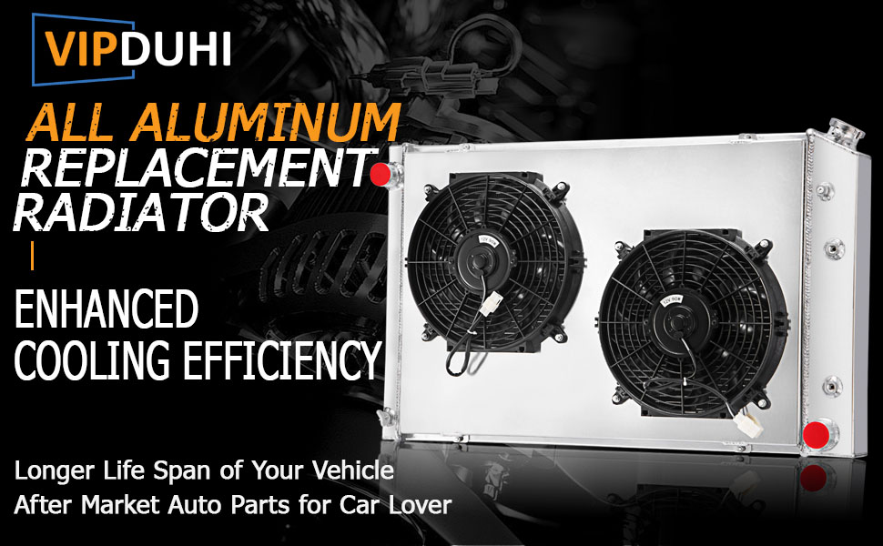 High Efficiency: VIPDUHI radiator cooling rows are spaced 3/8'' apart, giving you 25% more rows within the core, 14-16 cooling fins per inch, giving you approximately 1500 more cooling fins, provides 30% more cooling capacity.