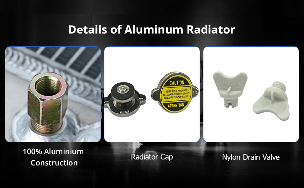 【𝟏𝟎𝟎% 𝐋𝐞𝐚𝐤 𝐓𝐞𝐬𝐭𝐞𝐝】 The radiator are 100% welded by TIG. We all our products are made of the best materials and advanced manufacture technique. And fully tested to Ensure highly quality.