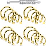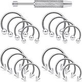 【PACKAGE INCLUDE】 16Pcs Mixed Size Horseshoe Hoop Rings Septum Jewelry Come As a Set, Different Size Satisfied All You Needs. Plus 1Pc Piercing Ball Grabber Tool. Affordable Price, Economical Choice; Well-polished Round Ends, Without Pains Caused by Other Sharp Piercing Jewelry. Come With One Gift Velvet Bag.