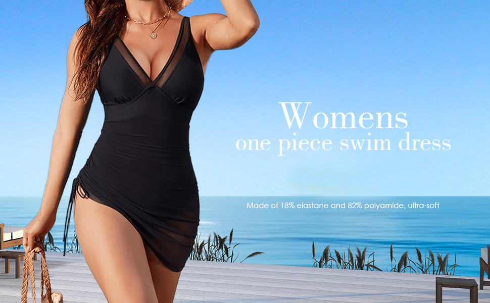 MATERIAL: Womens one piece swim dress is made of 18% elastane and 82% polyamide, ultra-soft, skin-friendly, durable and not easy to deform, good breathability, and comfortable to wear