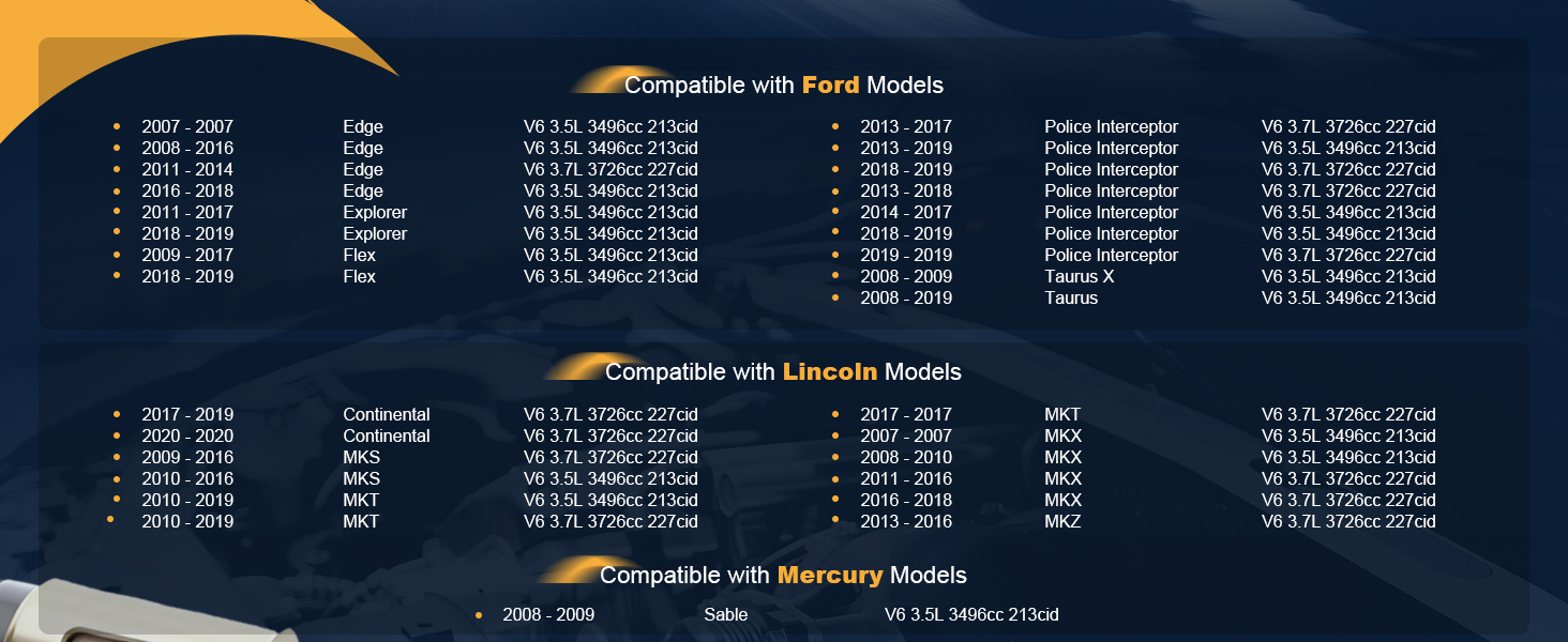 【Application】New Starter Replacement for Ford Flex 2009-2019 V6 3.5L | Edge 2007-2018 V6 3.5L (2016 fits To 10/23/2015) | Edge 2011-2014 V6 3.7L | Taurus 2008-2019 V6 3.5L | Explorer 2011-2019 V6 3.5L | Taurus X 2008-2009 V6 3.5L | Police Interceptor Sedan 2013-2019 V6 3.5L 3.7L | Police Interceptor Utility 2013-2017 2019 V6 3.7L | Police Interceptor Utility2014-2019 V6 3.5L. Please properly confirm the Year/Make/Model applicable information before ordering automotive replacement starter starters.