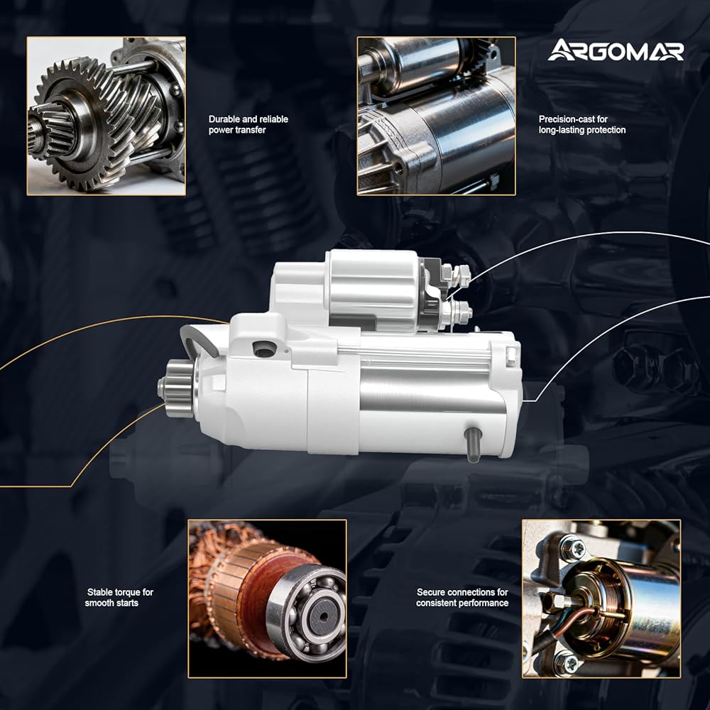 【Durable Construction】The starter motor is built with durable materials, resulting in a long lifespan and the ability to withstand frequent start-stop cycles. Drive End Housing made of Aluminum-Alloy Die-Castings for strong corrosion protection. Plunger made by CNC machining to ensure accurate and precise size. Solenoids and armatures use 200°C high-temperature resistant copper wire to guarantee longevity. Planetary Shaft and Starter Drive engineered and tested for maximum durability.