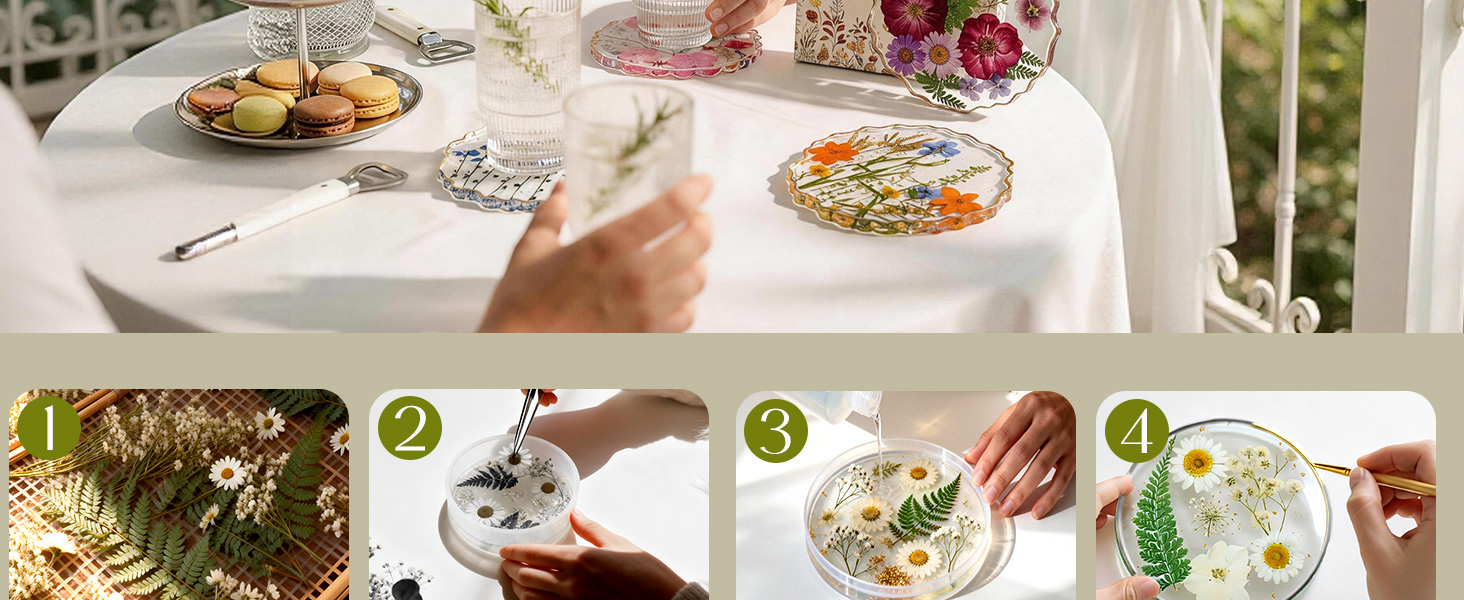 Handmade Resin Build: Made from durable resin with a smooth, waterproof surface and sturdy non-slip silicone feet for stability. Features hand-pressed floral patterns and hand-painted gold edges, combining durability with artisanal charm