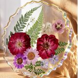 Unique Pink Wave Design: Features vibrant pink-white dried flowers and green leaf accents with a sleek wave shape, smooth gold rim is more delicate than a raised one. Perfect for adding a touch of elegance to your coffee table, office desk, or dining area