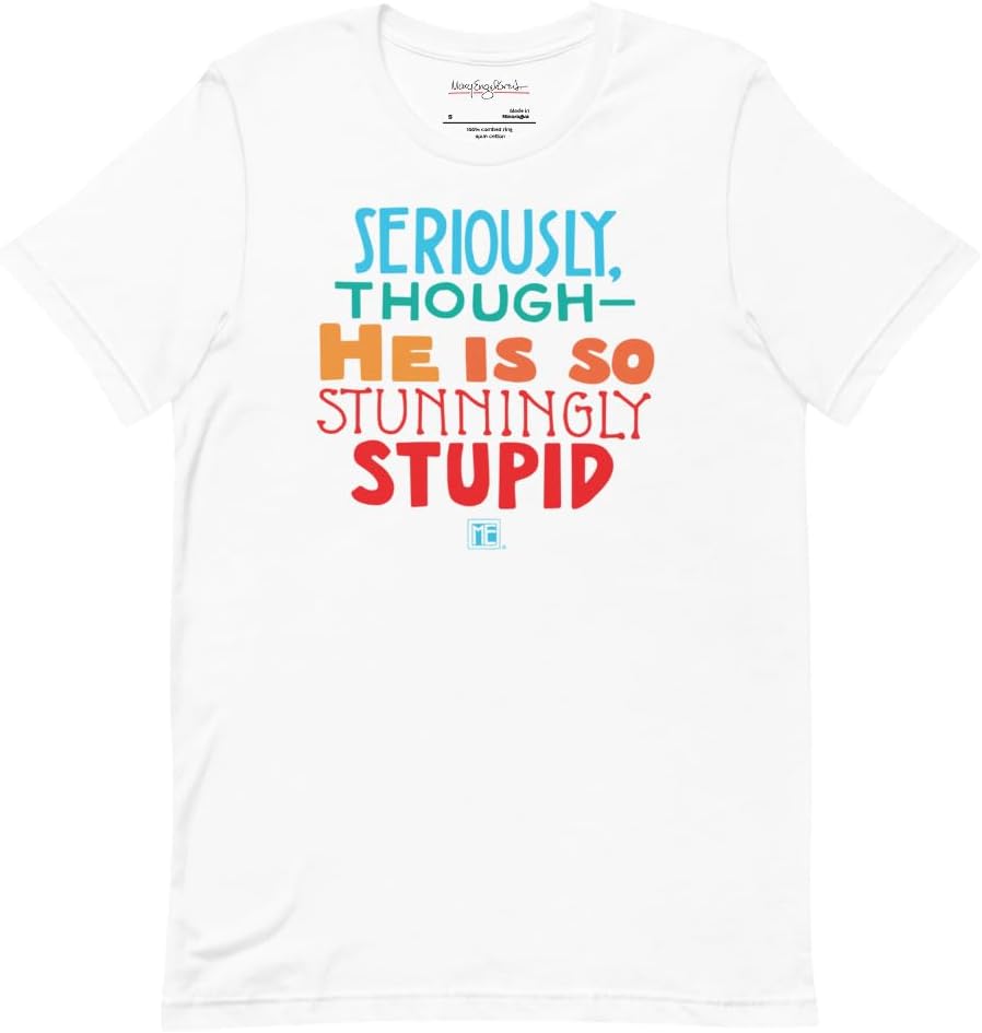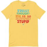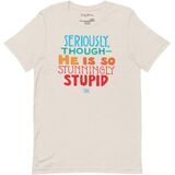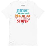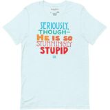 Show your support in this ultra comfortable ME T-shirt! Reads: Seriously, though - He is so stunningly stupid. 100% combed and ring-spun cotton (Heather colors contain polyester) Fabric weight: 4.2 oz/yd² (142 g/m²) Pre-shrunk fabric