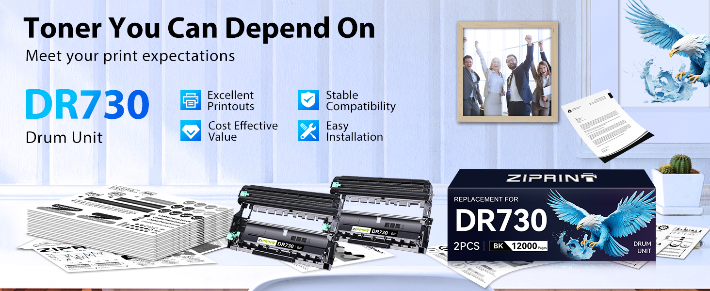 Crisp Print Quality: ZIPRINT drum dr730 equipped with a long-life OPC drum and high-quality components to produce sharp text and rich graphics with consistent, professional results