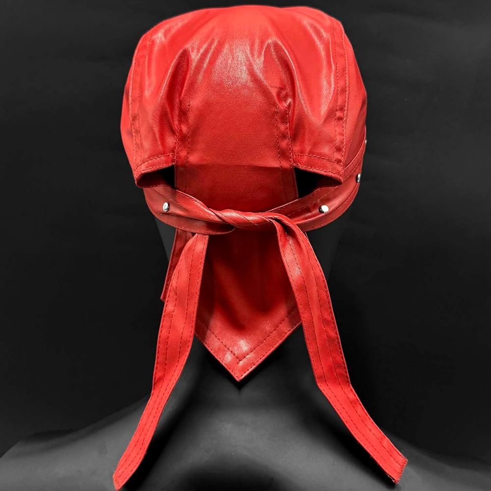Women Punk Rock Skull Cycling Bandana Doo Rags Adjustable Cap Metal Rivet Biker Cap Red