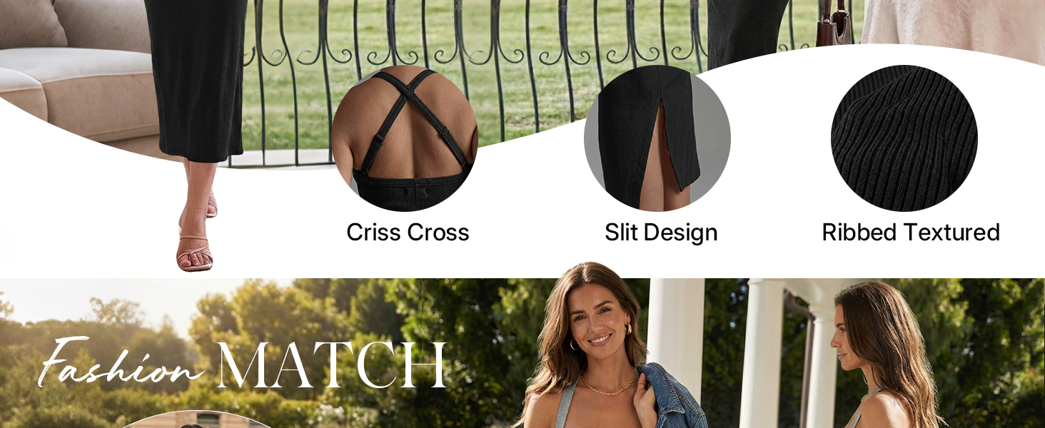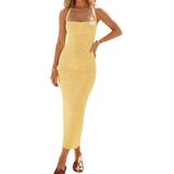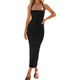 Features: This bodycon dress features a square neckline, criss cross straps, and a stunning backless design. The long dress has a bodycon midi silhouette with a slit hem, adapting to different body types for a figure flattering look—perfect as a cocktail dress or party dress.