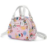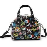 The Von Dutch Mini Bowling Bag – JAX Collection captures the brand's bold, artistic side with its all-over graphic print featuring iconic Von Dutch illustrations and logo motifs. Compact yet eye-catching, this mini bag combines expressive design with everyday practicality. Crafted from vegan leather, it maintains a sleek, structured silhouette at 6.87” x 2.87” x 5.5”, offering space for your essentials without losing its shape. The dual top handles and adjustable crossbody strap provide multiple styling options for day or night. Finished with metallic hardware, branded lining, and secure zip closure, it's the perfect mix of playful design and street-style confidence.