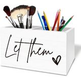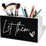 Rustic Let Them Pen Holder for Desk, Inspirational Positive Affirmation Wooden Box Sign Desk Decor for Home Office Decoration, Motivational Pencil Organizer, Mental Health Gifts