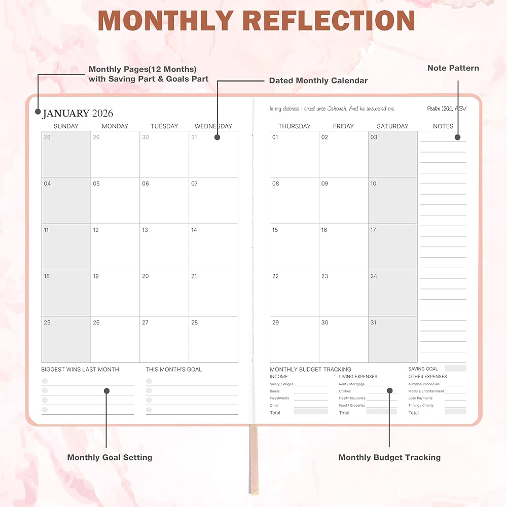 2026 Planner - This 2026 planner weekly and monthly features 12 months from Jan 2026 to Dec 2026, and this 8.37" x 5.75" 12 months bible organizer features weekly and monthly pages. Embrace the future with the 2026 planner christian - Your ultimate guide to a year of productivity and organization.