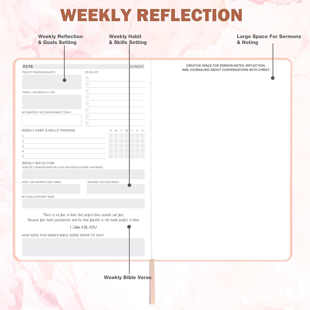 Weekly Pages - Each weekly page of this christian 2026 planner for women has Prayer Requests section + Grateful section + Accomplishment section + To Do List section for daily activities or events. Weekly Habit & Skill Tracking and Weekly Reflection of this 2026 daily planner facilatate you to embrace the art of meticulous planning.