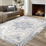 【Non-Slip Backing】: The non-slip particle design on the back of the 5x7 area rugs makes it unlikely to slide easily, firmly adhering to the ground. It is safe for children, pets or the elderly to walk on it.