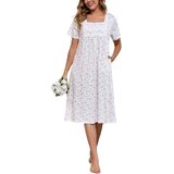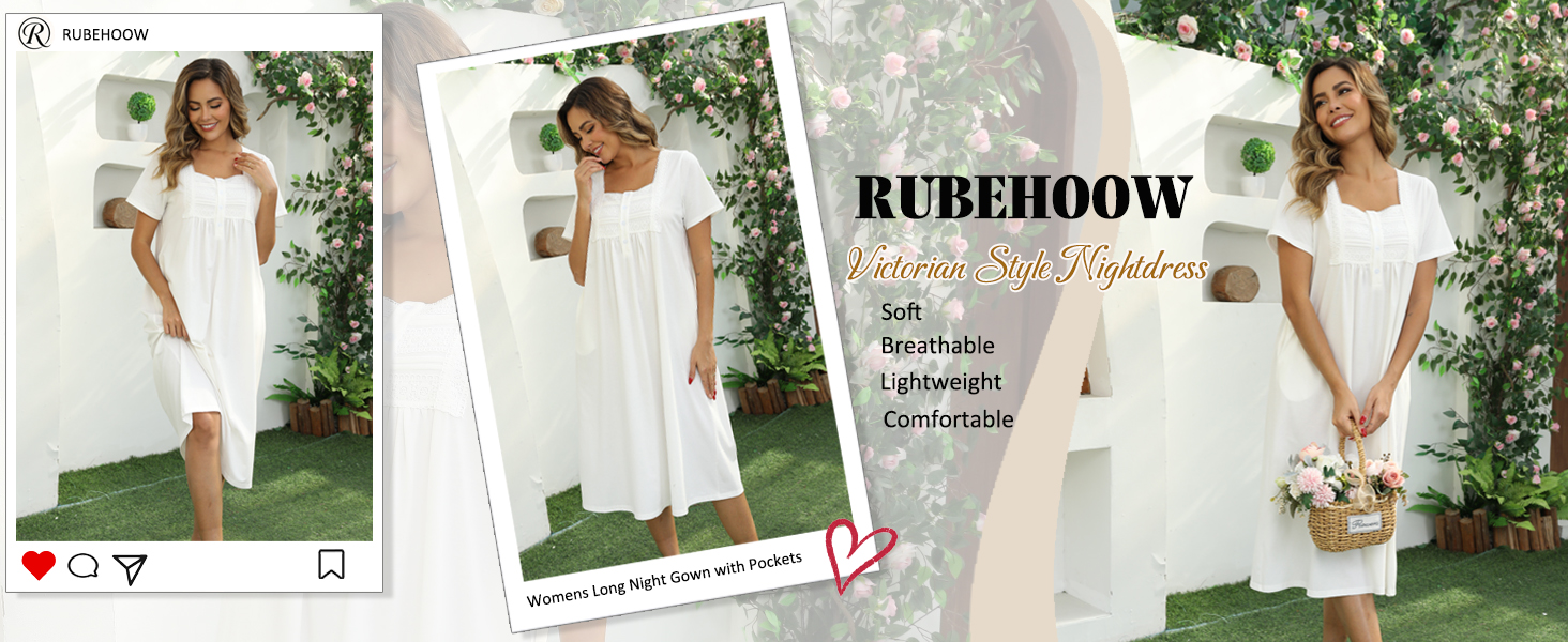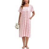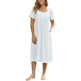 The nightgown feature with short sleeve, button placket front, easy to put on and off; beautifully detailed with cotton lace trim around the square neckline, add more elegant style