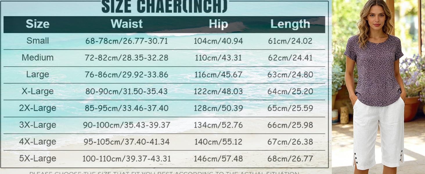 VERSATILE WEAR: Womens Linen Capris, Classic color and dressy casual design suitable for beach outings, summer activities, or everyday casual wear