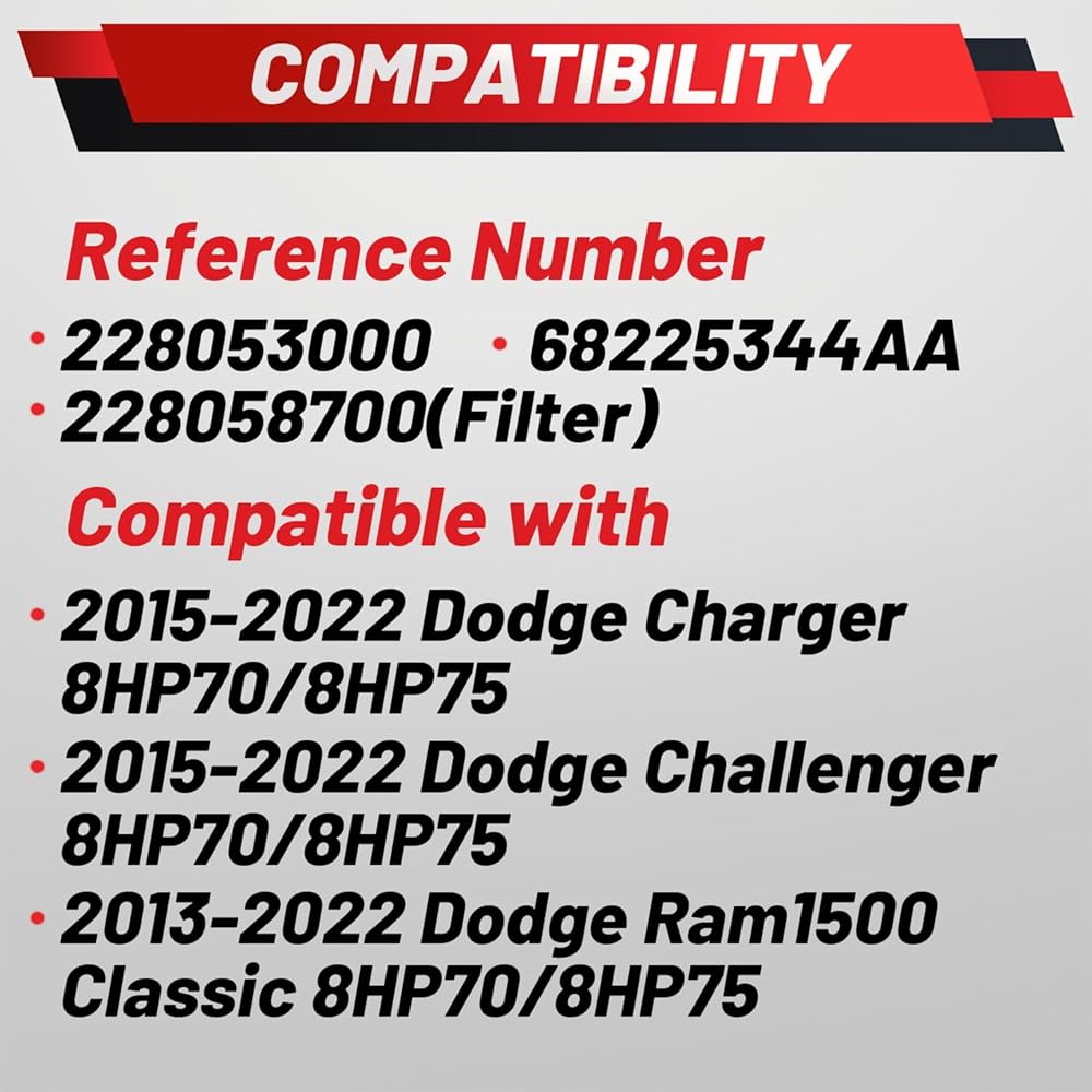 Application: Specifically engineered for 2013-2022 Ram 1500 (5.7L V8 Gas & 3.0L EcoDiesel) and 2015-2022 Dodge Challenger/Charger (5.7L/6.4L V8) models equipped with 8HP70 or 8HP75 8-speed transmissions only. Please verify your transmission model before purchase.