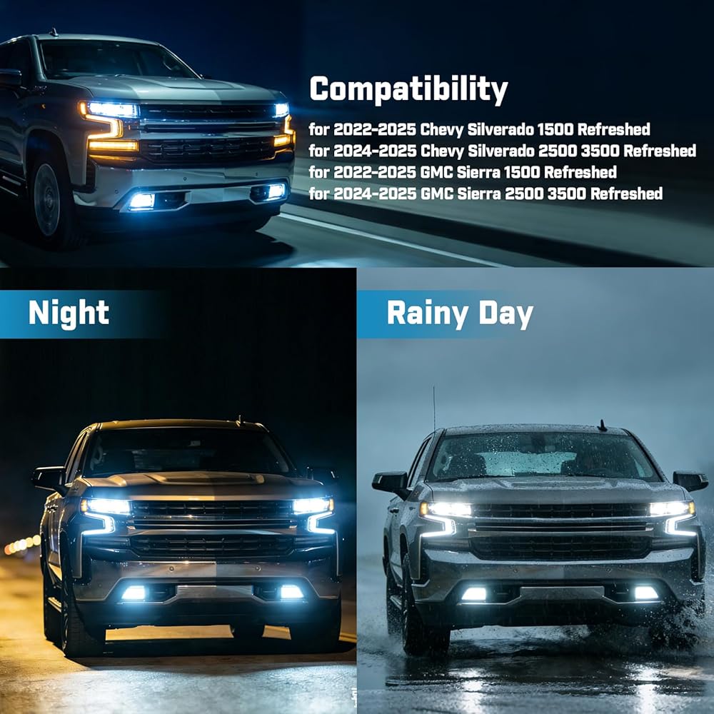 🛻Exclusive Fitment: This Silverado full-vehicle lighting assembly & automatic fog light conversion kit is specifically designed for 2022-2026 Chevrolet Silverado 1500 facelift models, for 2024-2026 Chevrolet Silverado 2500/3500 facelift models, for 2022-2026 GMC Sierra 1500 facelift models, for 2024-2026 GMC Sierra 2500/3500 facelift models.