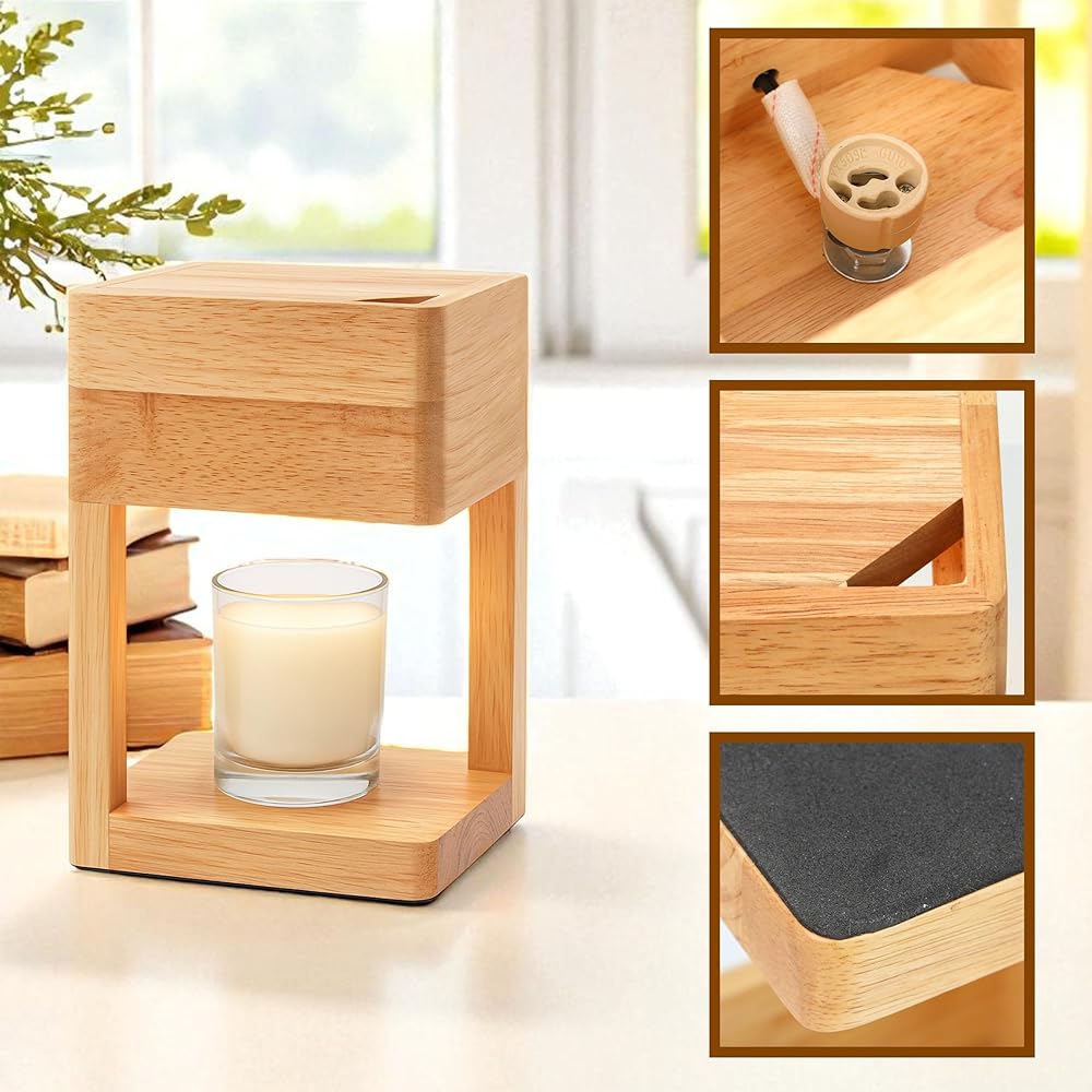 Candle Warmer Lamp Wood with Timer, Dimmable Electric for Jar Candles, 2*35 Watt Bulbs, Gifts for Mom, Christmas, Birthday Decorative Wooden Lamp Bedroom Home with Adjustable Brightness Auto Shut-Off