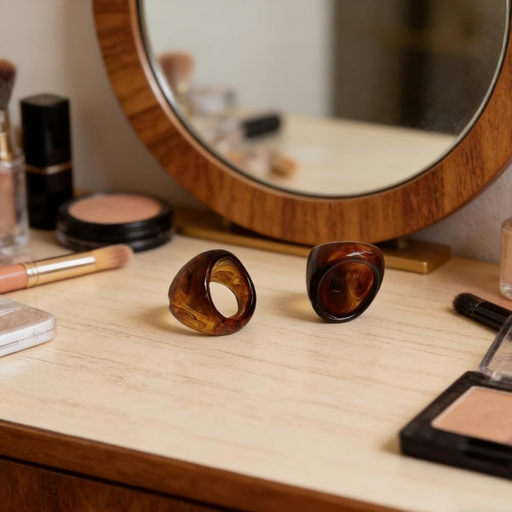 Artisan Hand-Polished Finish: Each piece of our resin rings undergoes a meticulous polishing process to ensure a smooth, glossy surface. This Vintage Chunky Resin Ring for Women reflects light beautifully, adding a touch of sophisticated luster to your fingers.