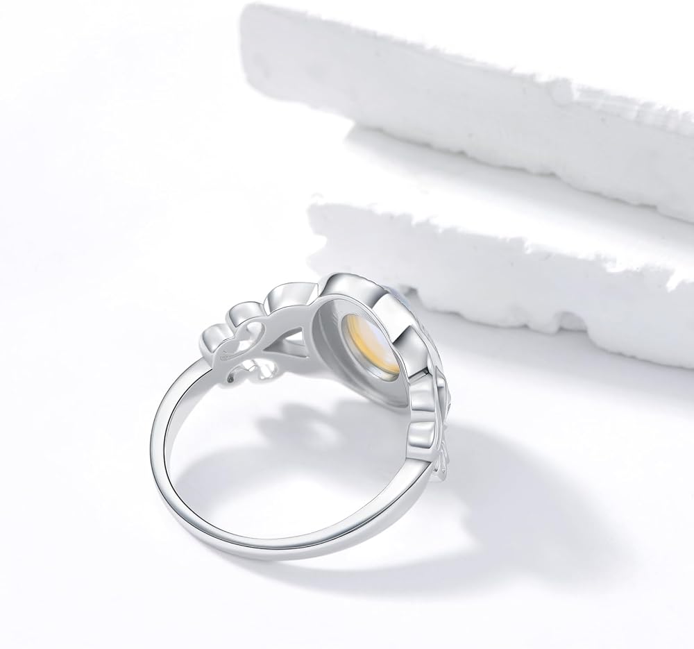This 925 sterling silver moonstone leaf ring is exquisite and eye-catching. It not only symbolizes romantic love, but also soothes people's mood and restores inner peace.