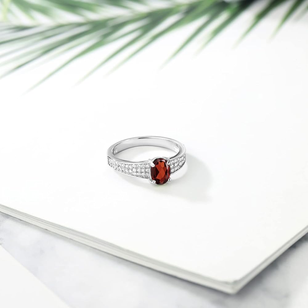 MEASUREMENTS: 8x6mm Oval Red Garnet, 1x1mm Round White Zirconia. Total Carat Weight is 1.98 cttw