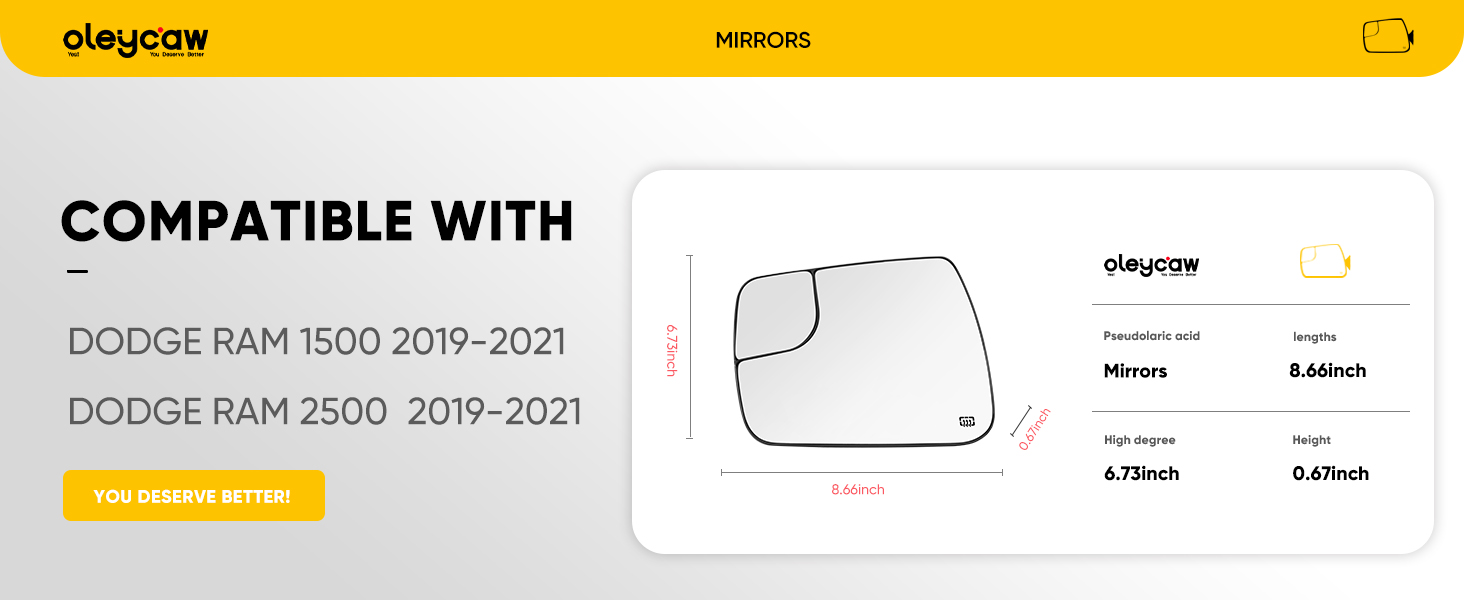 Rapid Heating: Mirror for dodge ram 1500/2500 driver side with power heated, fast defogging and defrosting