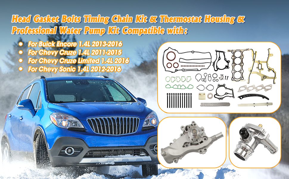 Compatibility: Head Gasket Bolts Timing Chain Kit Replacement for Buick Encore 1.4L 2013-2016 Replacement for Chevy Cruze 1.4L 2011-2015 Replacement for Chevy Cruze Limited 1.4L 2016 Replacement for Chevy Sonic 1.4L 2012-2016