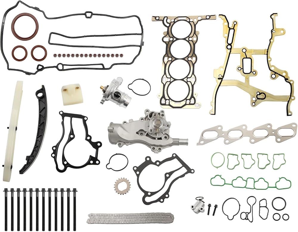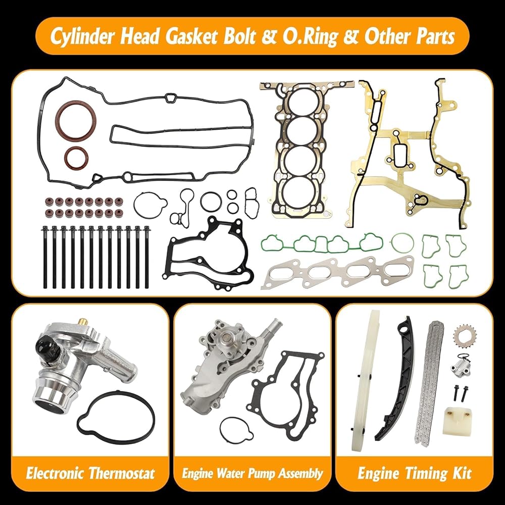 Packaging Include: Front Camshaft Seal, O-rings, Other Small Gaskets.Multiple Layers Steel (MLS) Head Gasket, Valve Stem Seals, Intake Manifold Gasket, Exhaust Manifold Gasket Valve Cover Gasket,Thermostat Housing Professional Water Pump Kit