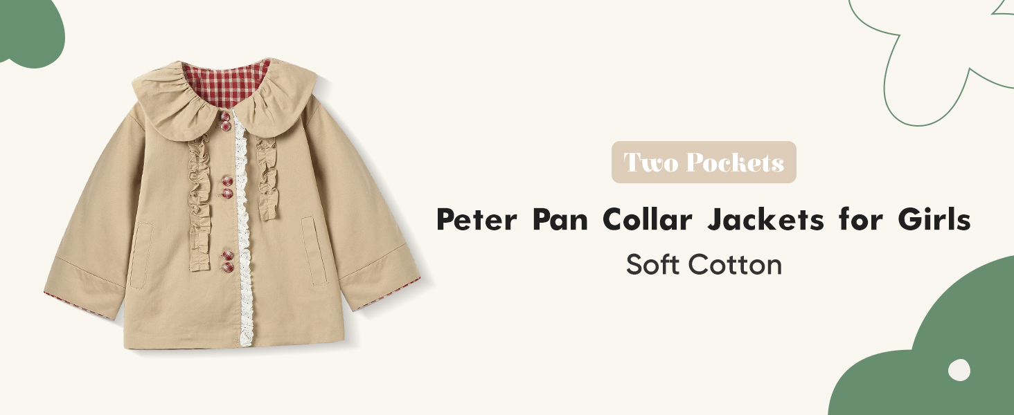 Peter Pan Collar:Adorable Peter Pan collar frames her sweet smile, while the sturdy patch pockets give her a handy spot to stash tiny treasures. This cute jackets for girls with pockets blends style and practicality