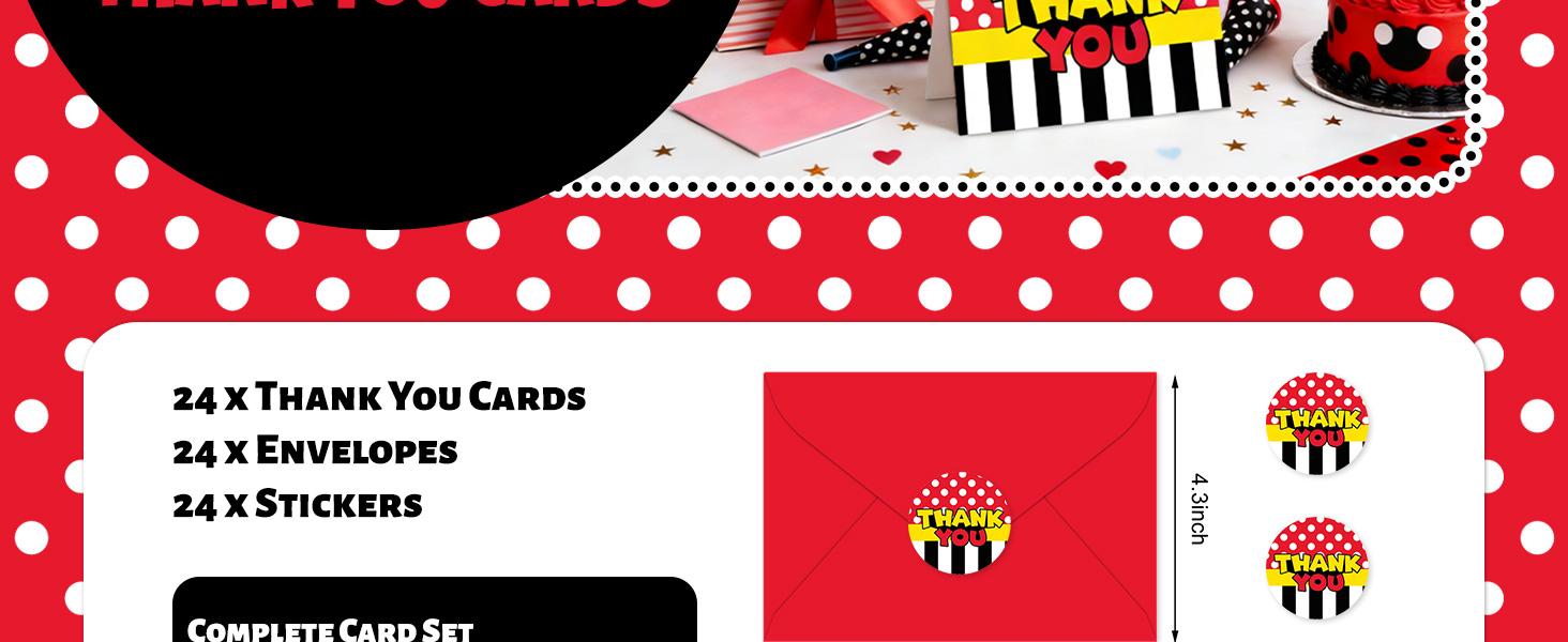 PLAYFUL DESIGN: These blank thank you cards feature cheerful red, yellow, and black dot and stripe patterns, creating a fun and engaging visual appeal perfect for all ages
