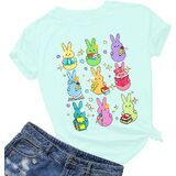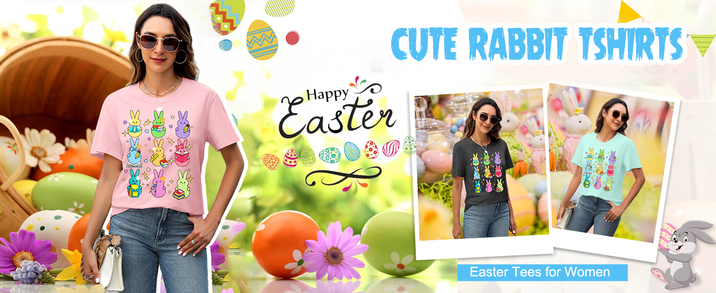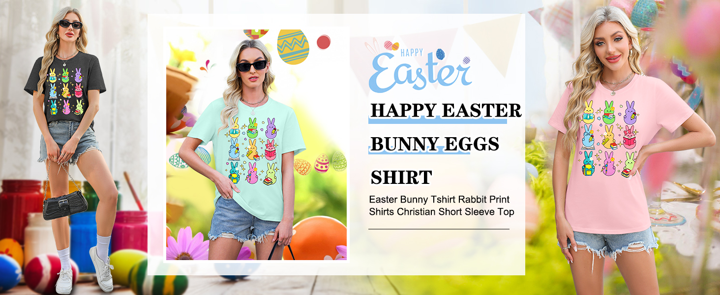 Features: Cute easter blouse, rabbit eggs tops is printed with cute cartoon bunny designs and are full of festive atmosphere. Funny rabbit shirts for women with short sleeve, crewneck, casual style, featuring a plain fabrication.
