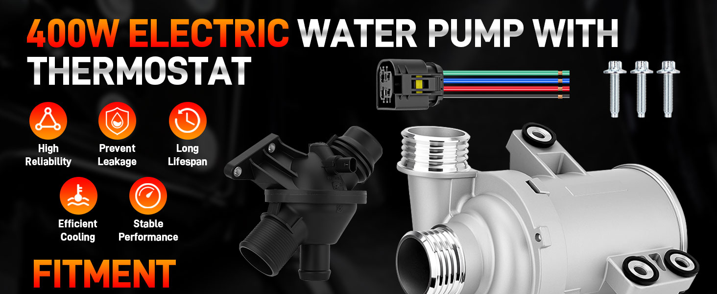 Performs Excellently: Our Water Pump and Thermostat Kit ensures precise engine temperature control via efficient coolant circulation. It effectively prevents and resolves leaks, overheating, unusual noises, and engine warnings caused by pump failure