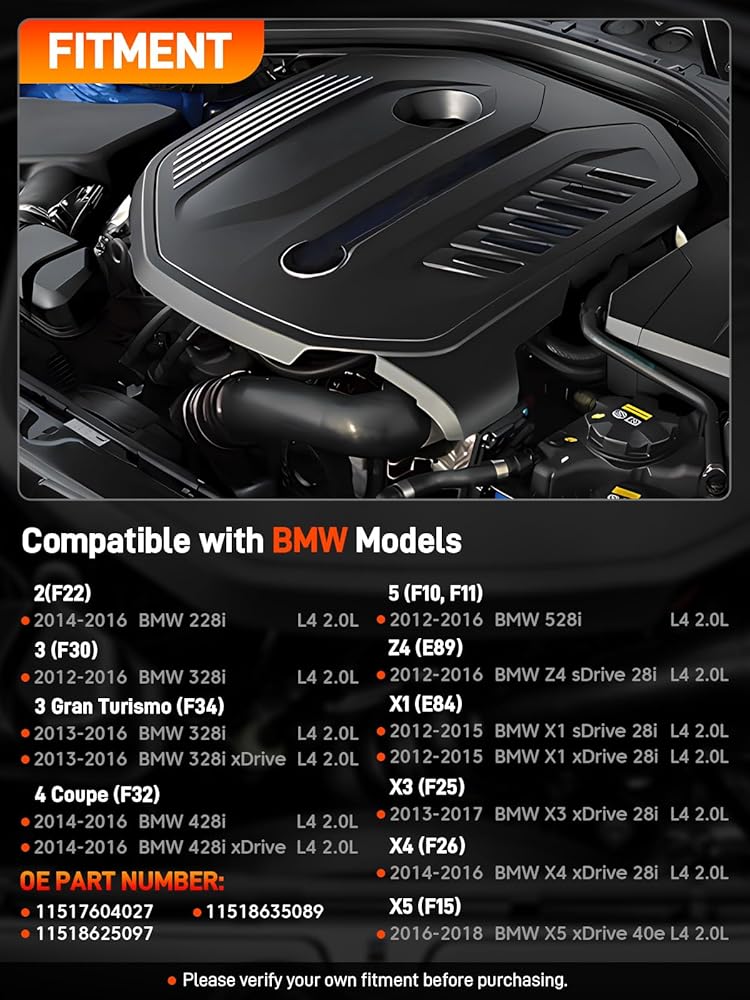 Note: Although both parts are for the N20B20 engine, there are power variations. OE#11517604027 fits vehicles rated at 180 kW, while OE#11517597715 fits vehicles rated at 135 kW. Please verify the pump configuration and part number before purchasing
