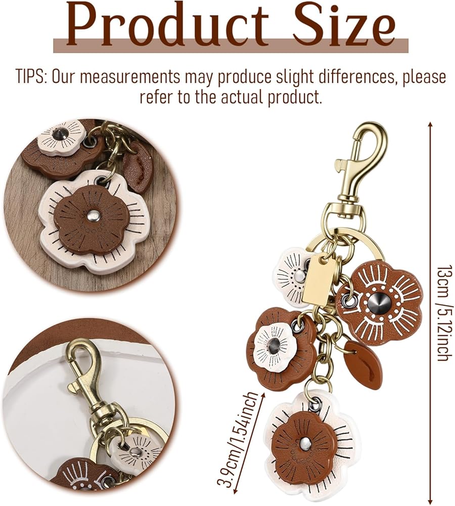 [Portable] The lightweight leather flower bag charm, measuring 5.12 inches in length, is easy to carry and can be conveniently hung on your handbag, backpack, wallet, or car key, showcasing your unique style and taste.