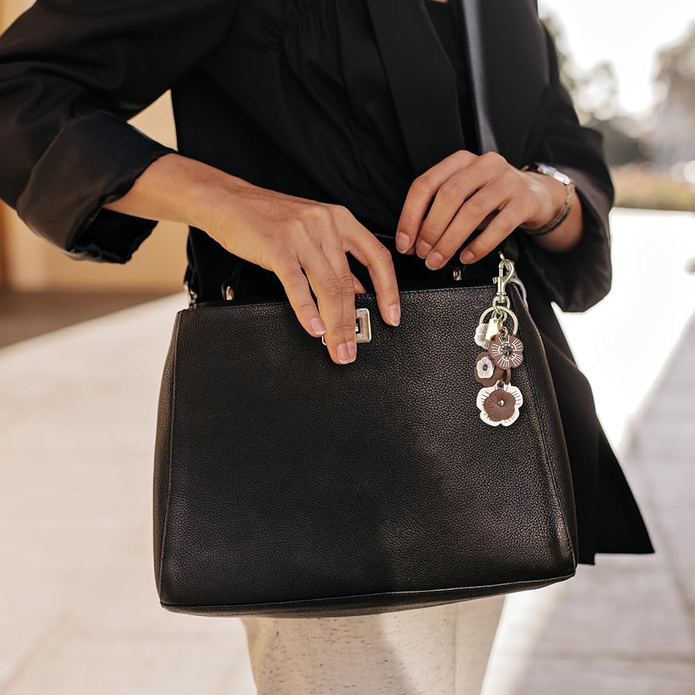 [Premium Material] Flower bag charm is crafted from durable zinc alloy and premium artificial leather, which boasts a smooth surface that resists wear and fading, ensuring long-lasting performance. It's the perfect everyday companion.