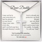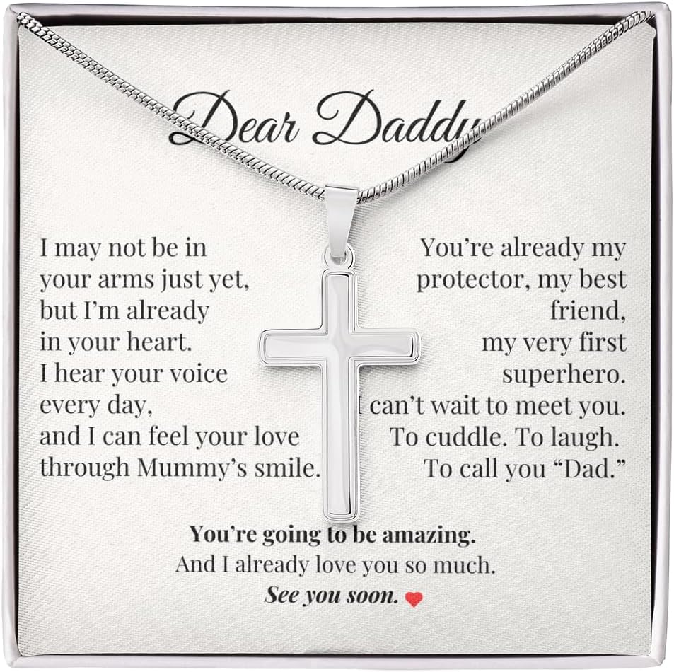 🛠️ Crafted to Last Like a Father's Love – Stainless Steel With Meaning Made from premium-grade stainless steel, this necklace is built to endure—just like the promise of a father's unwavering presence. Hypoallergenic, tarnish-resistant, and comfortable to wear all day long, it's ideal for everyday style or keepsake value. The cross design speaks to his faith, protection, and strength. The cuban link option adds modern masculinity and a bold visual reminder: real dads are tough—but soft-hearted for their babies. Every glance in the mirror becomes a reminder of the journey he's about to take—one of unconditional love and lifelong devotion.