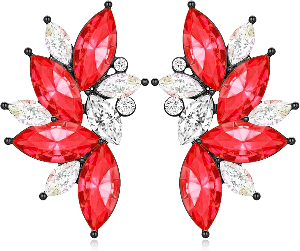 JIMARIN Bohemian Statement Sparkly Colourful Fancy Rhinestone Crystal Flower Dangle Drop Stud Earrings Vintage Wedding Bridal Prom Earrings for Women
