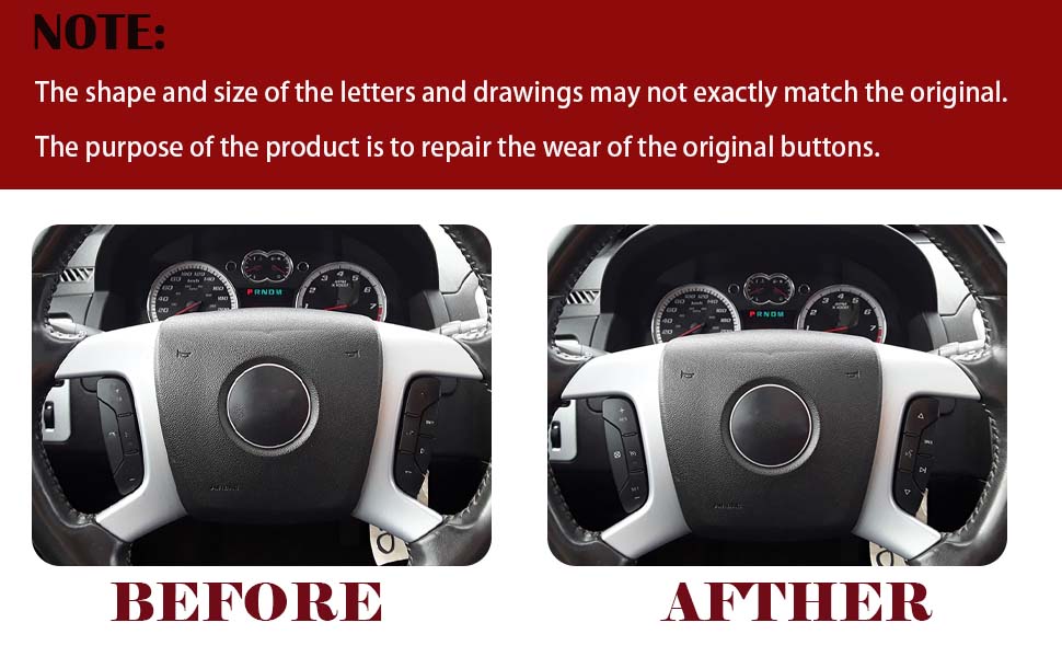 NOTE: Note that the shape and size of the letters and drawings may not exactly match the original. The purpose of the product is to repair the wear of the original buttons