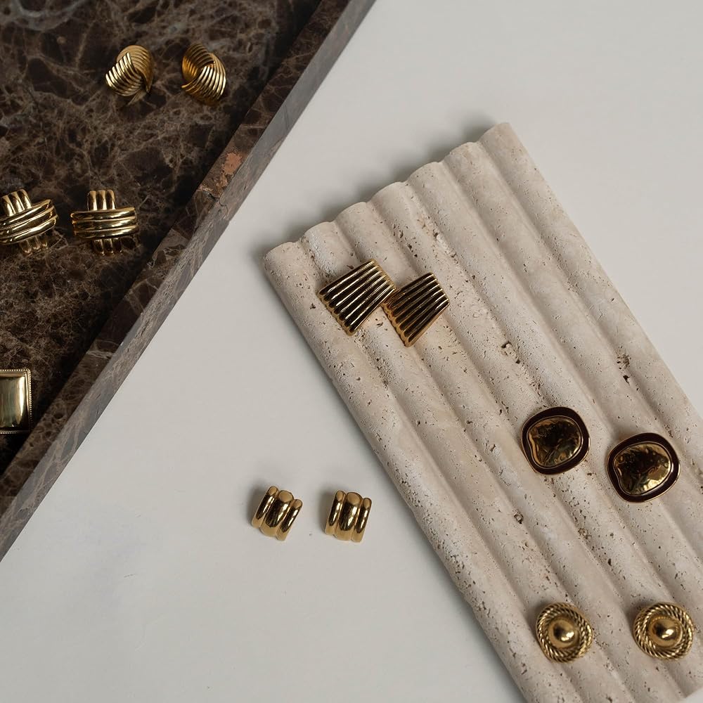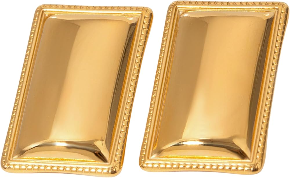 Make a modern statement with the House of Hunter Gold Rectangle Statement Earrings. These sleek rectangle-shaped earrings feature a polished gold-tone finish that adds sophistication to any look. Lightweight and comfortable, they are perfect for elevating everyday outfits or adding a bold touch to evening wear. Packaged elegantly, they make a great gift for birthdays, holidays, or special occasions. Weight: 7.8g Size: 2.6cm x 1.7cm