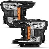 🚗【FITMENT】Headlight assembly compatible with 2018 2019 2020 Ford F-150. Compatible with Halogen Type Headlight Models. Not Compatible with Factory LED Headlight Models. Bulbs are not included. High beam bulb type: 9005; low beam bulb type: H11; signal light: 7444NA; side marker light: 168. OEM Part Number: KL3Z13008D KL3Z13008C; Partslink Number: FO2502372 FO2503372.