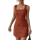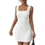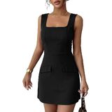 Our club night dress features a square neck, sleeveless, a high waist, and two decorative front pockets . The above knee length and slim fit silhouette enhance your curves for a effortlessly feminine and fashionable look.