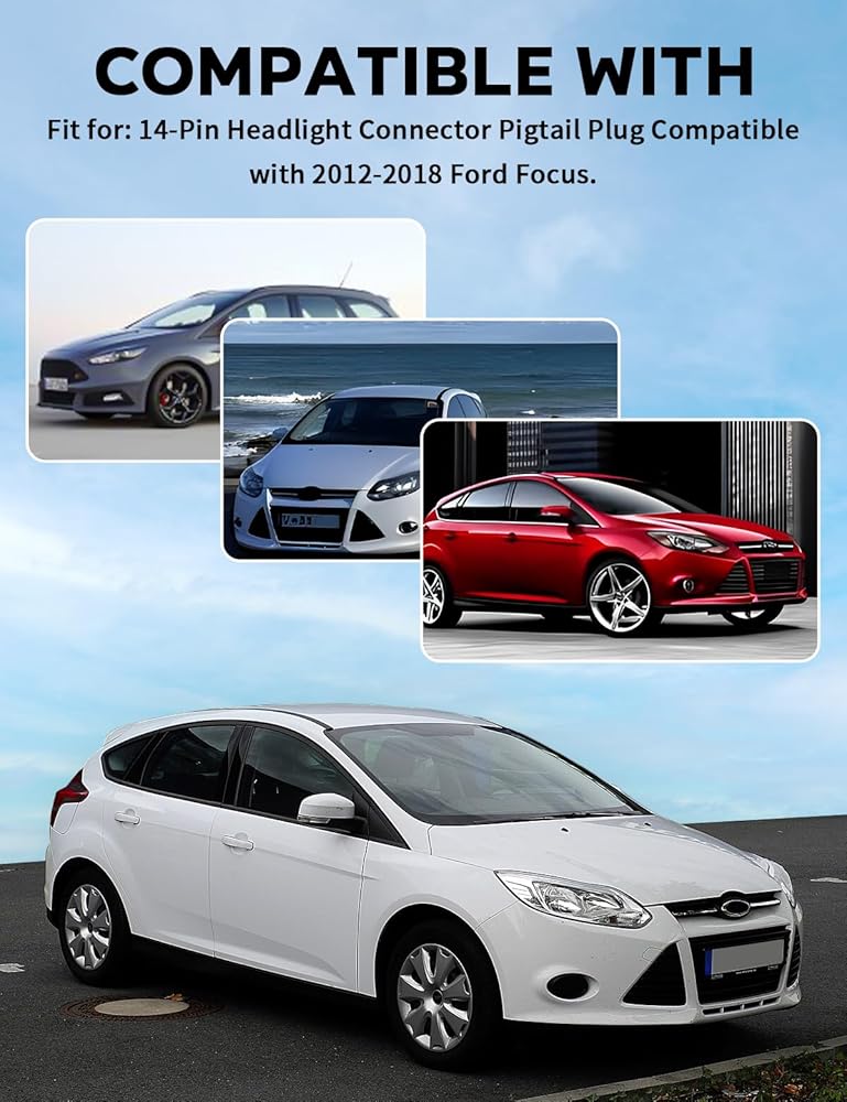 Fitment: 14-Pin Headlight Connector Pigtail Plug fit for Ford Focus 2012 2013 2014 2015 2016 2017 2018
