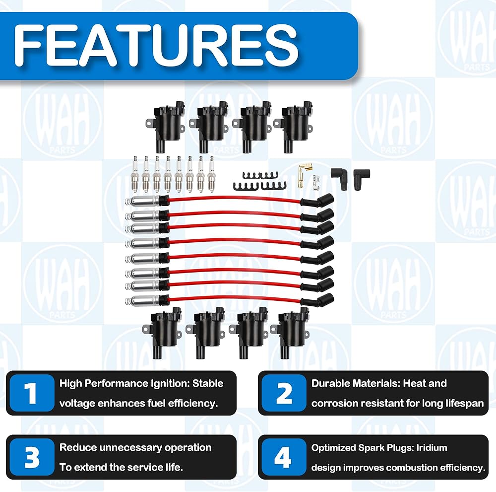 - PRODUCT DESCRIPTION:UF262 Ignition Coils Pack And 41-962 Iridium Spark Plugs With 12192192 Spark Plug Wires