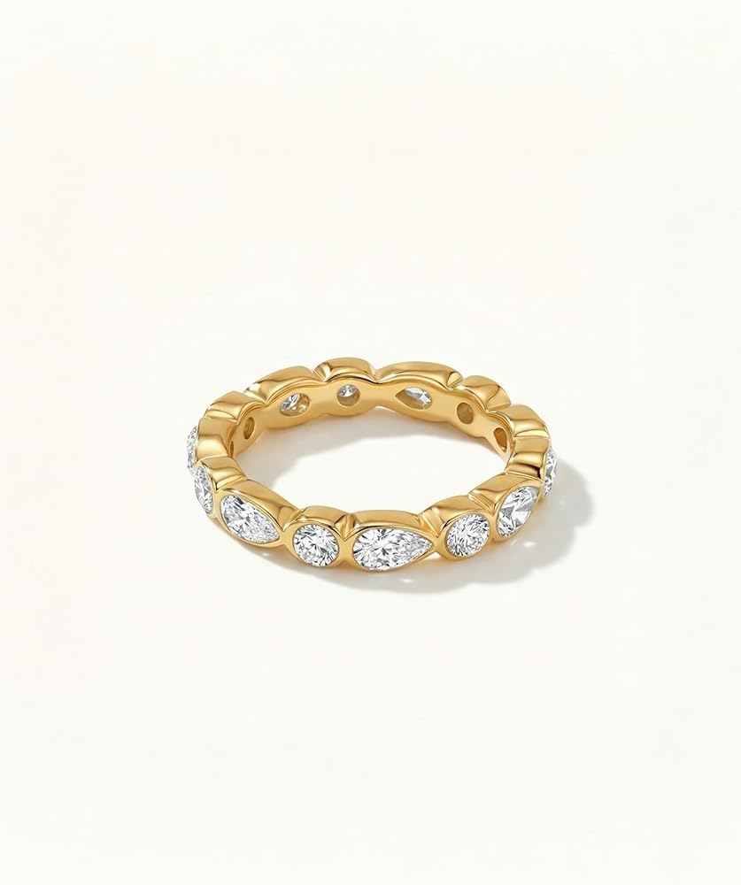 ELEGANT DESIGN: Modern eternity band featuring bezel-set oval and pear-cut cubic zirconia stones in a sleek, continuous silhouette that captures light beautifully for a refined, elegant look