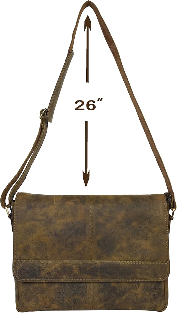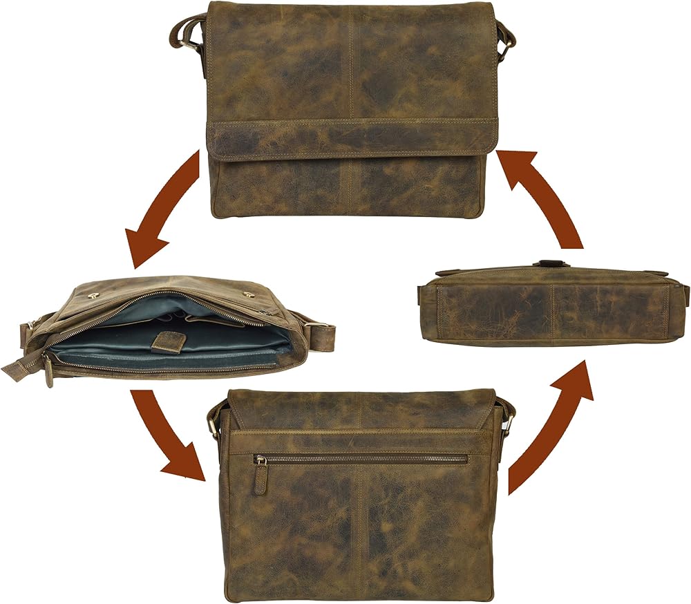 EASY CARRY, PERFECT FIT: Designed for convenience and versatility, our 14-inch laptop bag effortlessly combines portability with functionality. The padded main compartment snugly accommodates 14-inch laptops, while also providing a perfect fit for the more common 13-inch models. Each bag's leather is tailored from different buffaloes/cows, resulting in subtle variations in color that add to its unique charm without compromising on quality or functionality.