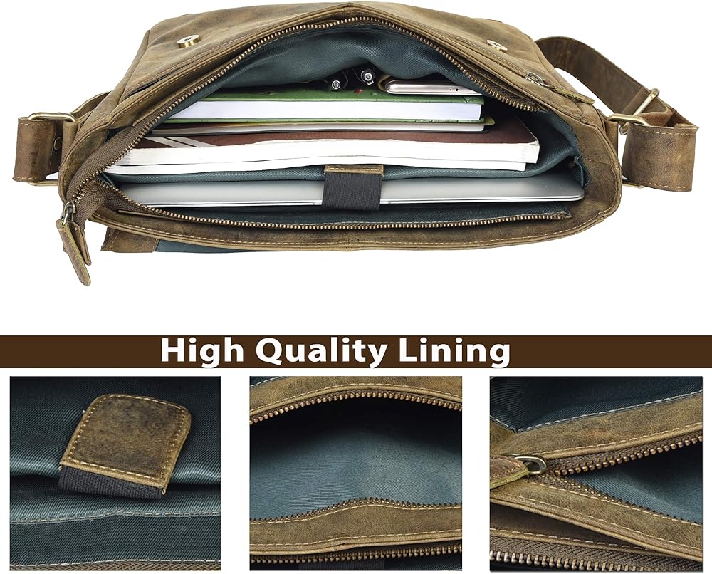 STYLISH LEATHER MESSENGER BAG: Crafted from superior cowhide leather and rugged wash canvas fabric, our laptop bag is a testament to durability and style. The meticulous construction ensures long-lasting performance, with each bag showcasing the unique characteristics of retro and wildness. Embrace the disorderly wrinkles, scars, and scratches that add to the bag's distinctive appeal.